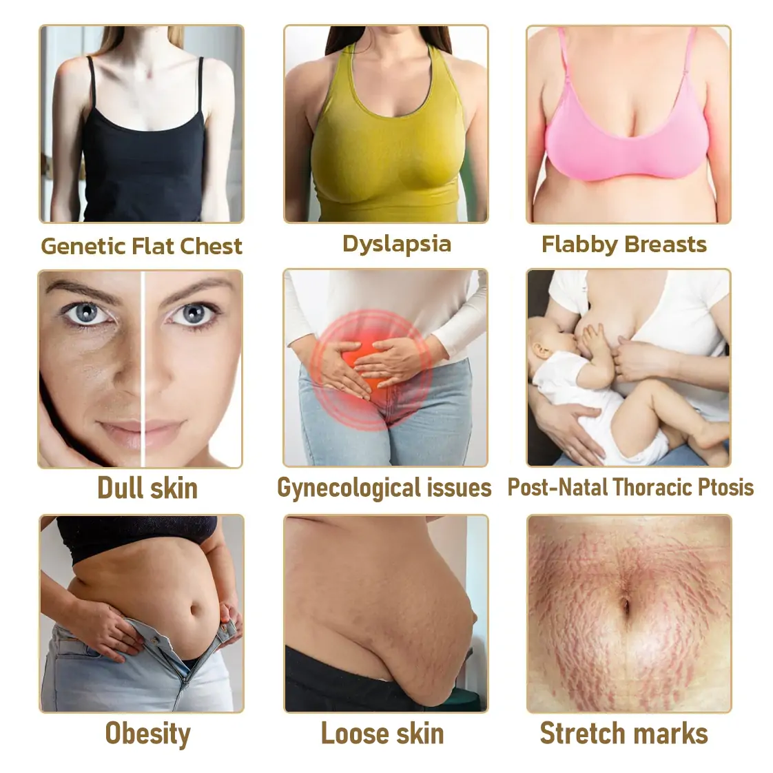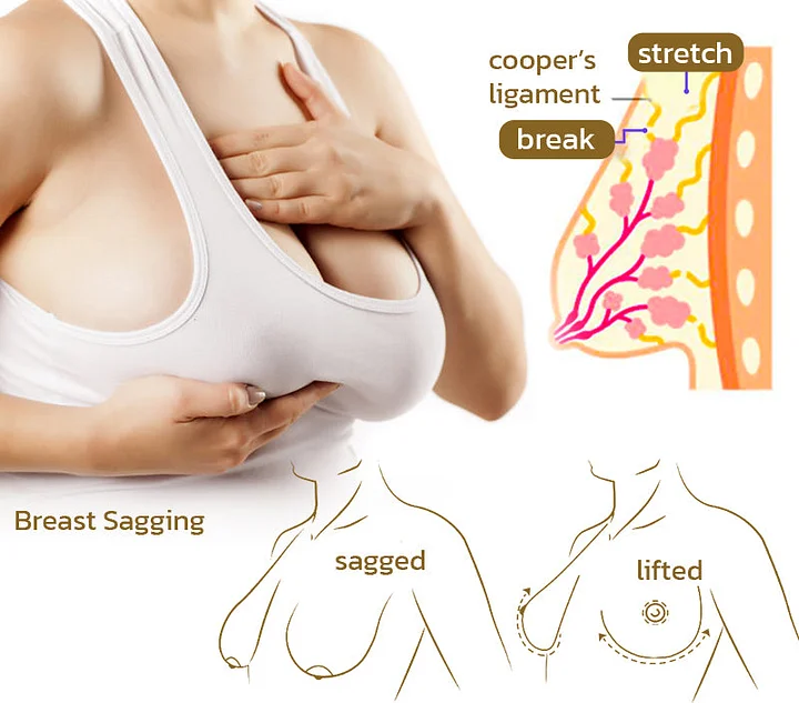 As women go through aging, pregnancy, childbirth, hormonal shifts, and long-term toxin exposure, the entire feminine system begins to change. Collagen production slows, skin loses elasticity, and the body’s natural estrogen levels decline. These factors weaken Cooper’s ligaments, causing the breasts to lose volume, firmness, and lift.