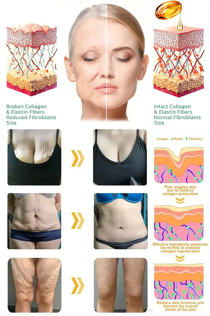 ✔ Supports collagen production, improves skin elasticity, and reduces signs of aging in the breast area